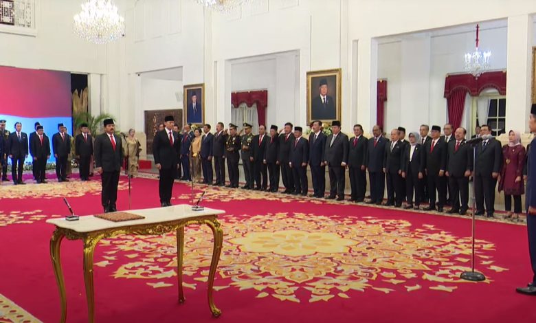“Mengangkat sebagai menteri negara dalam sisa masa jabatan periode 2019 2024 masing masing, satu Saudara Hadi Tjahjanto sebagai Menteri Koordinator Bidang Politik, Hukum dan Keamanan (Menko Polhukam) dan dua Saudara Agus Harimurti Yudhoyono (AHY) sebagai Menteri Agraria dan Tata Ruang/Kepala Badan Pertanahan Nasional (ATR/BPN), ketiga dan seterusnya ditetapkan di Jakarta ada tanggal 20 Februari 2024, Presiden Republik Indonesia Joko Widodo,” kata Nanik dikutip yotube Sekretariat Presiden.