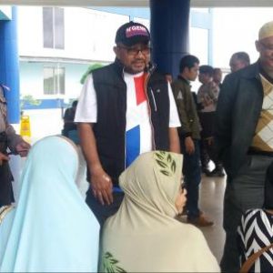 Calon Walikota H Lis Darmansyah (tengah) sedang menyapa ibu-ibu yang tengah duduk di teras pintu masuk RSUD Raja Ahmad Thabib Kepri, usai menjalani pemeriksaan kesehatan di hari kedua, Sabtu siang (13/1/2017). Foto prokepri.com/MASRUN.