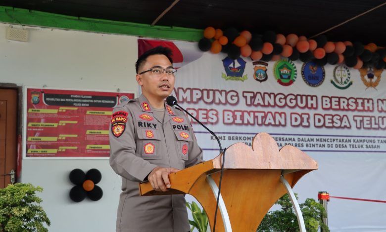 PROKEPRI.COM, BINTAN – Kapolres Bintan AKBP Riky Iswoyo meresmikan Desa Teluk Sasah Kecamatan Seri Kuala Lobam dinobatkan sebagai ‘Kampung Tangguh Bebas Narkoba’, Selasa (15/8/2023) kemaren.