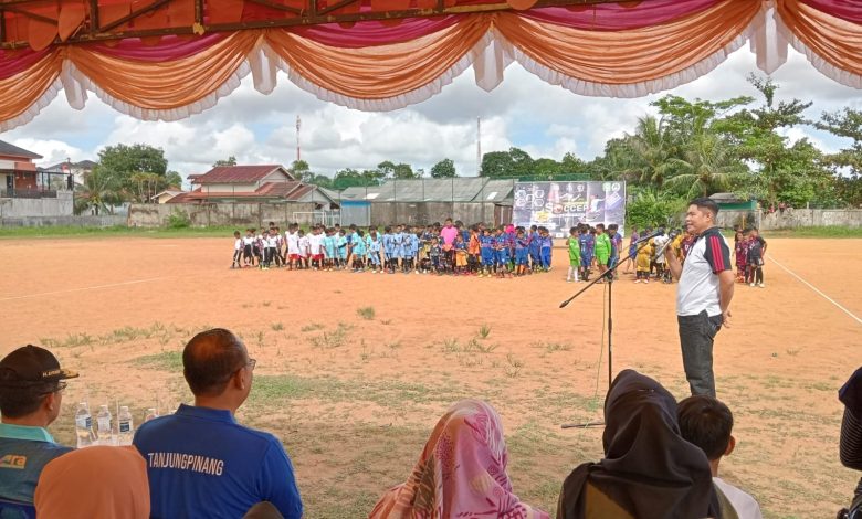 Asisten I Setdako Tanjungpinang, Muhammad Yatim membuka resmi turnamen soccer kelompok usia 10 tahun dan 12 tahun yang digelar PSSI Tanjungpinang di Lapangan Sepakbola Jalan Hang Lekir, Batu 10. Foto Diskominfo Tpi