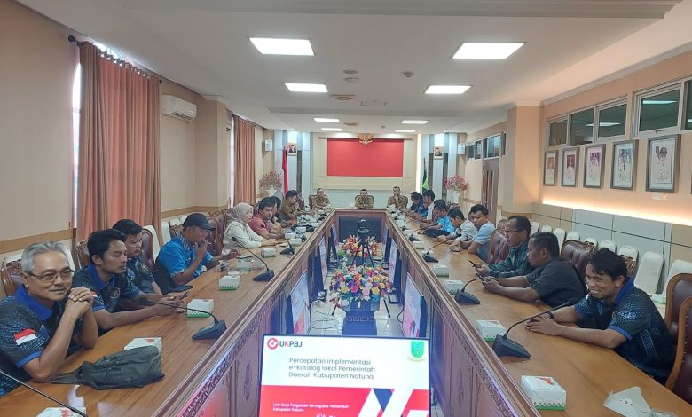 PROKEPRI.COM, NATUNA – Dinas Komunikasi dan Informatika (Diskominfo) Kabupaten Natuna melaksanakan sosialisasi belanja Pengadaan Barang dan Jasa menggunakan E-katalog kepada seluruh awak media massa di Ruang Rapat Kantor Bupati Natuna, Jalan Batu Sisir, Bukit Arai, Kecamatan Bunguran Timur, Ranai pada Selasa (28/02/2023).