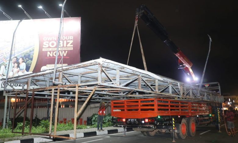 PROKEPRI.COM, BATAM – Dua papan reklame berukuran besar di kawasan Fanindo Sanctuary Garden dan Pollux Mall Batam Center, Kota Batam dibongkar secara mandiri oleh pemiliknya, Selasa (27/5/2025) malam.