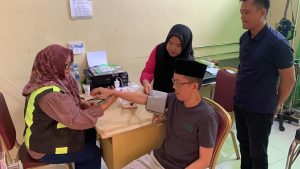 Tim kesehatan Polres Bintan sedang mengecek kesehatan Hasan sebelum dikeluarkan dari sel. Foto ist