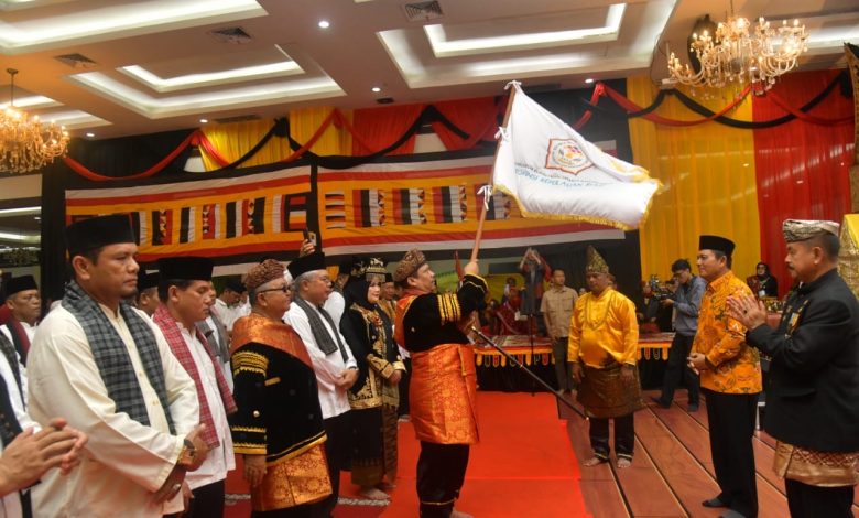 PROKEPRI.COM, BATAM – Ketua Umum Lembaga Kerapatan Adat Alam Minangkabau (LKAAM) Sumatera Barat, Fauzi Bahar Datuak Nan Sati mengukuhkan H Nurman HMN Datuak Rajo Baso sebagai Ketua Keluarga Besar Rumah Gadang (KBRG) Provinsi Kepri pertama periode 2025-2030 di Ballroom D Golden Prawn, Bengkong, Batam, Sabtu (27/9/2025).