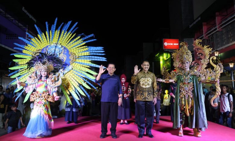 Warna-warni dan berbagai corak bentuk kostum peserta Kepri young karnival berjalan beriringan melalui karpet merah sepanjang Kota Lama mengawali Malam Puncak Acara bertajuk ‘Merdeka Berkreasi, Bersatu Bangun Bangsa’ ini.