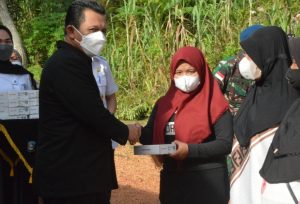 Gubernur Ansar bersama jajaran Forkompinda Kepri pada kesempatan tersebut juga memberikan bantuan 100 paket sembako kepada masyarakat Kampung Bulang.