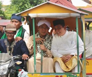 Habib Segaf bin Hasan Baharun yang juga mengisi acara dengan tausiahnya bersama Alhabib Alwi bin Muhammad Al’Atos serta memandu doa dan haul dihadiri ribuan warga.