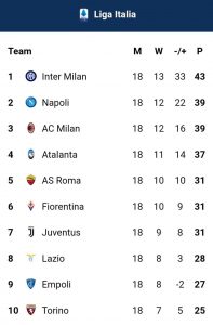 Klasemen Sementara Serie A