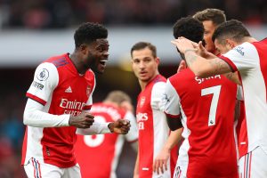 Aksi Thomas Partey saat mencetak gol ke gawang Leicester. (Foto : twitter/@premierleague)