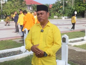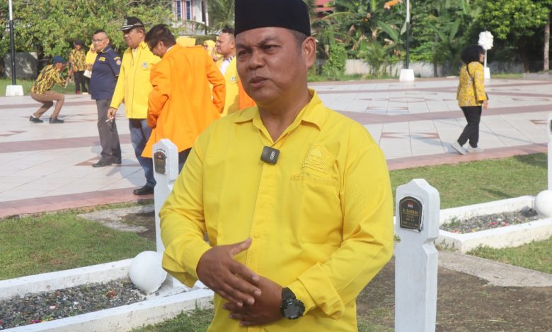 Ketua DPD II Partai Golkar Kota Tanjungpinang, Untung Budiawan memberikan keterangan kepada awak media usai berziarah ke Makam Pahlawan di Batu 5 Bawah, Senin (20/10/2025). Foto prokepri/jp