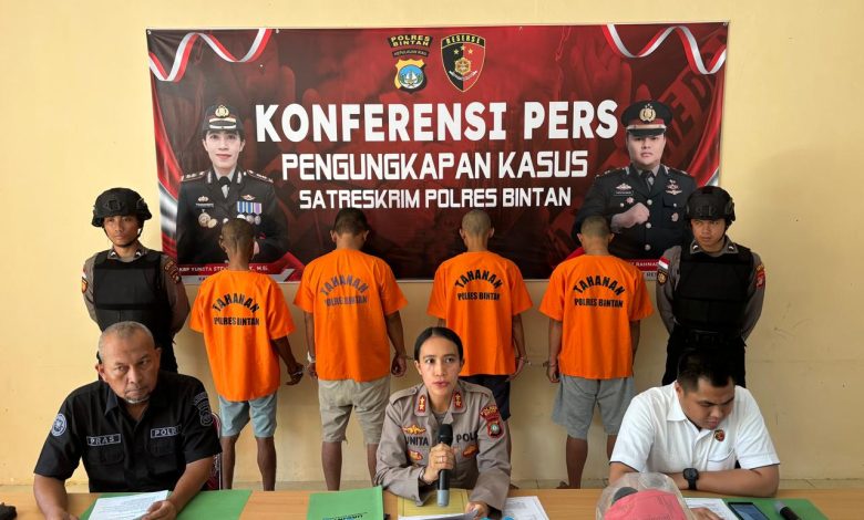 “Mendapati laporan dari masyarakat atas kejadian itu, Satreskrim Polres Bintan bersama Unit Reskrim Polsek Gunung Kijang melakukan pencarian terhadap pelaku dan berhasil mengamankan pelaku kemudian pelaku beserta barang bukti diamankan di Mapolres Bintan guna dilakukan pemeriksaan lebih lanjut,”jelas Yunita.