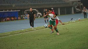 Duel sengit yang terjadi saat Indonesia melawan Yordania. Foto : google/@(PSSI.org)