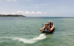 Tim bergerak menggunakan perahu karet rigid (RIB 05) dengan membawa peralatan lengkap, termasuk alat komunikasi, peralatan medis (responder bag), dan alat evakuasi.
