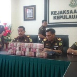 “Kita telah menerima pengembalian uang kerugian negara dari salah seorang tersangka yakkni, Ir Wahyu Nugroho MA Bin Hasyim sebesar Rp1,1 miliar. Uang tersebut telah kita sita dan dititipkan sementara di Bank Rakyat Indonesia (BRI) cabang Tanjungpinang,” kata Kepala Kejati Kepri, Yunan Harjaka SH MH didampingi Wakilnya, Asri Agung Putra SH, Asistentin Tindak Pidana Khusus (Aspidsus), Feri Tas SH MHum Msi dan Asisten Intelijen, Martono SH MH, kepada sejumlah wartawan di kantornya, Selasa (11/4) lalu.