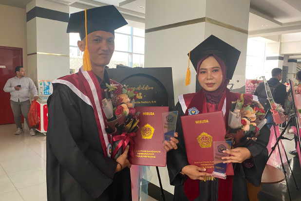 PROKEPRI.COM, KAMPUS – Pasangan suami istri bernama Irwanto dan Fitriawati berhasil meraih gelar S1 Manajemen di STIE Pembangunan Tanjungpinang. Sang istri, Fitriawati mendapat predikat cumlaude.
