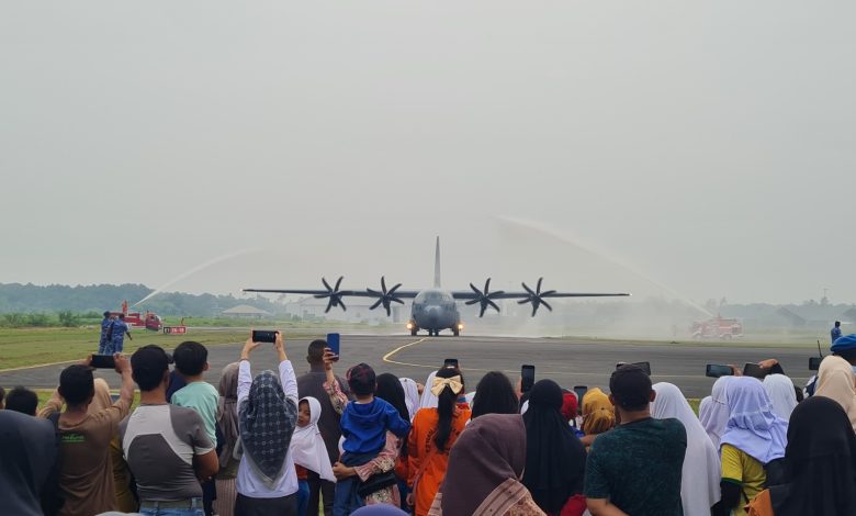 Ketua DPRD Natuna Saksikan Pendaratan Perdana Super Hercules TNI AU