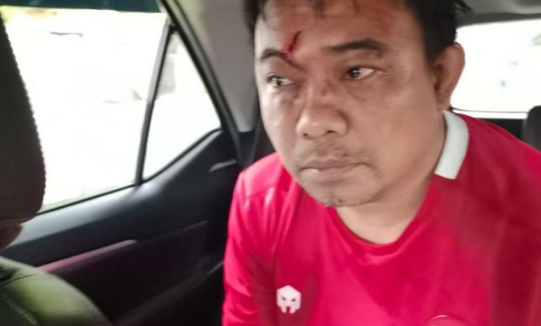 Dalam foto yang diterima Republika, wajah Haris terlihat babak belur. Dia yang memakai jersey timnas Indonesia berwarna merah dengan muka terluka dan mengeluarkan darah.