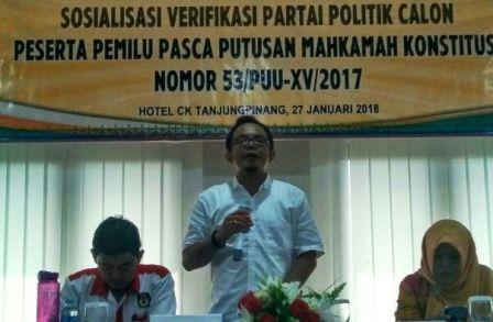 PROKEPRI.COM, TANJUNGPINANG – Komisi Pemilihan Umum (KPU) Kota Tanjungpinang akan melakukan verifikasi ulang 12 partai politik (Parpol) mulai Selasa, (30/1/2018) hingga Kamis, (1/2/2018) nanti. Hal ini dilakukan sesuai keputusan Mahkamah Konstitusi (MK) nomor 53/PUU-XV/2017 terkait verifikasi faktual Parpol untuk menjadi peserta Pemilu 2019 mendatang.