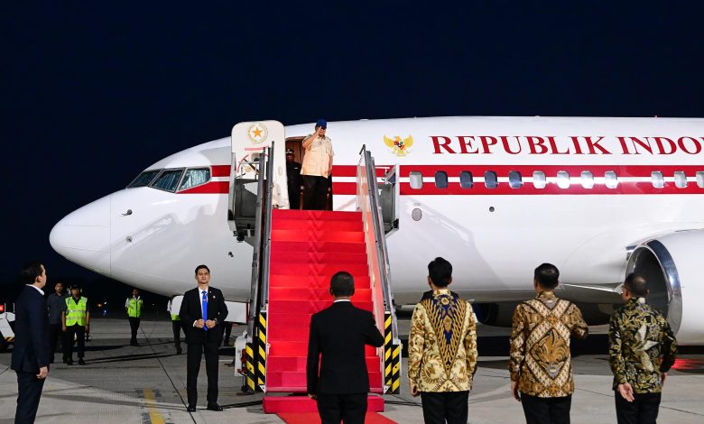 Presiden Prabowo bersama rombongan terbatas lepas landas dari Pangkalan TNI AU Halim Perdanakusuma, Jakarta, sekitar pukul 18.20 WIB.