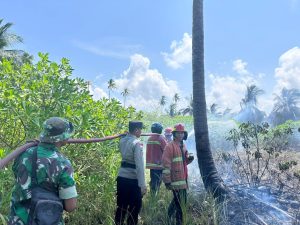 Personil Damkar Kabupaten Natuna tiba di lokasi bersama tim gabungan, termasuk Babinsa Desa Cemaga Tengah Serda David Alaslan, serta para Bhabinkamtibmas dari Desa Cemaga Tengah, Cemaga Utara, dan Cemaga Selatan.