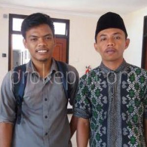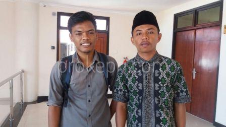 Ketua Umum Himpunan Mahasiswa Tambelan, Zulkarnain (kiri) bersama rekannya, usai diskusi di Ruang Rapat Sekda Kepri, Lantai 3 Gedung A Kantor Gubernur Kepri, Rabu (31/1/2018). Foto Prokepri.com/MASRUN.