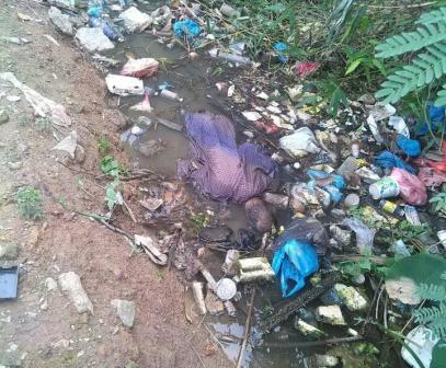 Sesosok mayat ditemukan diparit dan berserakan sampah, Kota Batam, Senin (04/12/2017) siang.