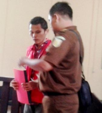 Terdakwa Yudin Tahyudin alias Udin (27), dituntut selama 1 tahun penjara karena dinilai terbukti bersalah melakukan tindak pidana pencurian jagung di Bintan, Rabu (1/3). Foto Prokepri.com/AL.