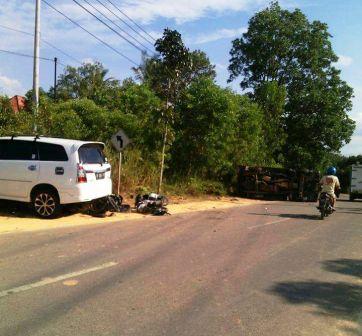 “Sebelumnya saya nampak dari kejauhan mobil Inova dalam keadaan oleng tiba didekt saya, mobil tersebut langsung menabrak bagian tengan mobil Biks saya, hingga akhirnya saya sepontan terguling,” ungkas sang supir mobil Boks, Ifan (30).