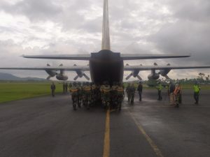 Pasukan elit Denhanud 477 Kopasgat tersebut bergerak dari landasan pacu Pangkalan Udara Raden Sadjad (RSA) Ranai dengan menggunakan Pesawat C 130 A – 1318 dari skadron 31 Halim Perdana Kusama.