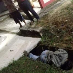 Beginlah Sumadi (43), pengendara sepeda motor tewas akibat kecelakaan tunggal, menambrak pembatas jalan dan masuk dalam parit dekat Pos Kamling di Jalan Satria, Kampung Karang Rejo KM 11, Tanjungpinang, Senin (10/4) sekitar pukul 05.00 WIB dini hari. Foto Prokepri.com/AL.