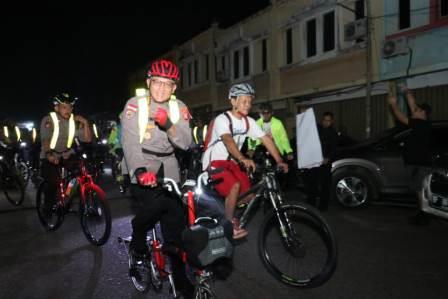 PROKEPRI.COM, BATAM – Dalam rangka Nite Ride Kelap Kelip Ramadhan, Kepolisian Daerah (Polda) Kepri bersama 15 club komunitas gowes mengeliling Kota Batam