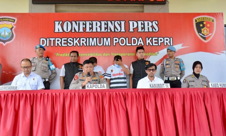Hal tersebut disampaikan langsung oleh Kapolda Kepri Irjen. Pol. Drs. Tabana Bangun, M.Si., didampingi oleh Wadir Ditreskrimum Polda Kepri AKBP Ary Baroto, S.I.K., M.H., Kasubdit IV Ditreskrimum Polda Kepri AKBP Achmad Suherlan, S.I.K., dan Paurmitra Subbid Penmas Bidhumas Polda Kepri Melda Rahmi, S.IP., M.I.Kom. pada saat Konferensi Pers di Mapolda Kepri. Rabu (15/3/2023) kemaren.