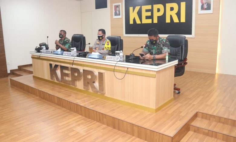 PROKEPRI.COM,BATAM – Dalam rangka Pengamanan Natal dan Tahun Baru 2022, Kapolda Kepri Irjen Pol Dr. Aris Budiman M.Si menggelar Rapat Koordinasi Lintas Sektoral yang dihadiri oleh Kaskogabwilhan I, Danrem 033/WP, Wakapolda Kepri, FKPD Provinsi Kepri dan Kapolres/ta jajaran Polda Kepri yang dilaksanakan di Rupatama Polda Kepri, Jumat (26/11/2021).