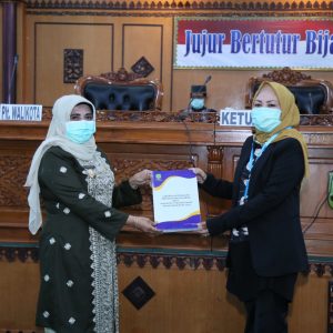 2. Plt Walikota Tanjungpinang Hj Rahma menyerahkan Nota LKPJ Walikota Tahun 2019 ke Ketua DPRD