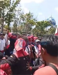 PROKEPRI.COM, BATAM – Ratusan buruh yang tergabung dalam Federasi Serikat Pekerja Metal Indonesia (FSPMI) menggelar aksi demontrasi di depan Kantor Wali Kota Batam, Kamis (30/10/2025).