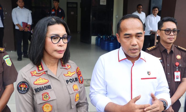 Dirreskrimum Polda Kepri Kombes Pol. Ronni Bonic didampingi Kabidhumas Polda Kepri Kombes Pol Nona Pricillia Ohei memberikan keterangan pers seputar rekonstruksi perkara dugaan tindak pidana penganiayaan terhadap almarhum Bripda NS. Foto prokepri/i