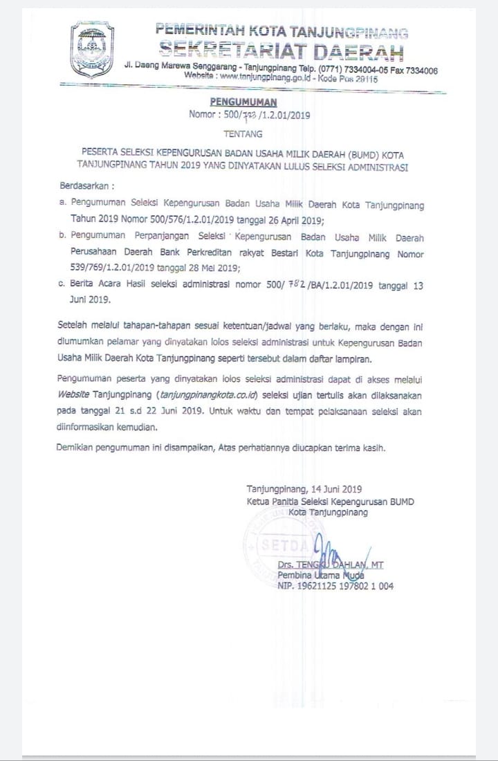 PROKEPRI.COM, TANJUNGPINANG – Walikota Tanjungpinang H Syahrul didesak mencabut Surat Keputusan (SK) Direktur Utama (Dirut) BUMD di PT Tanjungpinang…