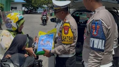 Hari ke-5 Operasi Zebra, Polres Anambas Bagi-Bagi Beras ke Pengendara Tertib