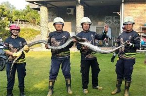 Ular Piton 3 Meter Diamankan Petugas Damkar Bintan