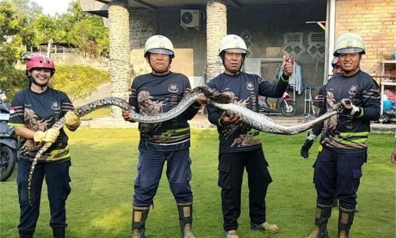 PROKEPRI.COM, BINTAN – Seekor ular piton sepanjang 3 meter berhasil diamankan petugas Pemadam Kebakaran (Damkar) Tanjung Uban, Kabupaten Bintan, Selasa (29/04/2025).