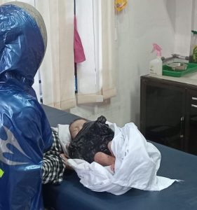 Tepat pukul 15.10 WIB, bayi mungil tersebut langsung ditangani oleh pihak Puskesmas serta dilakukan pemeriksaan lalu dilanjutkan bayi dibersihkan.